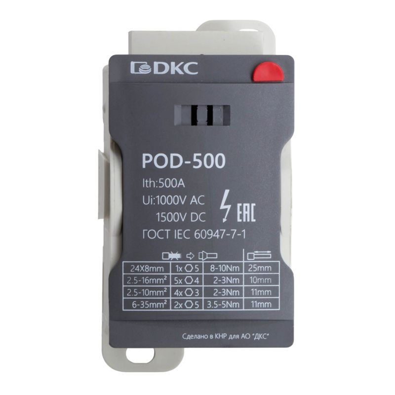 - Блок распределительный винтовой зажим плоский 24х8 мм 2х35кв.мм 5х16кв.мм 4х10кв.мм DKC POD-500