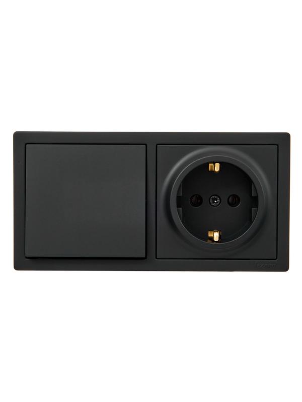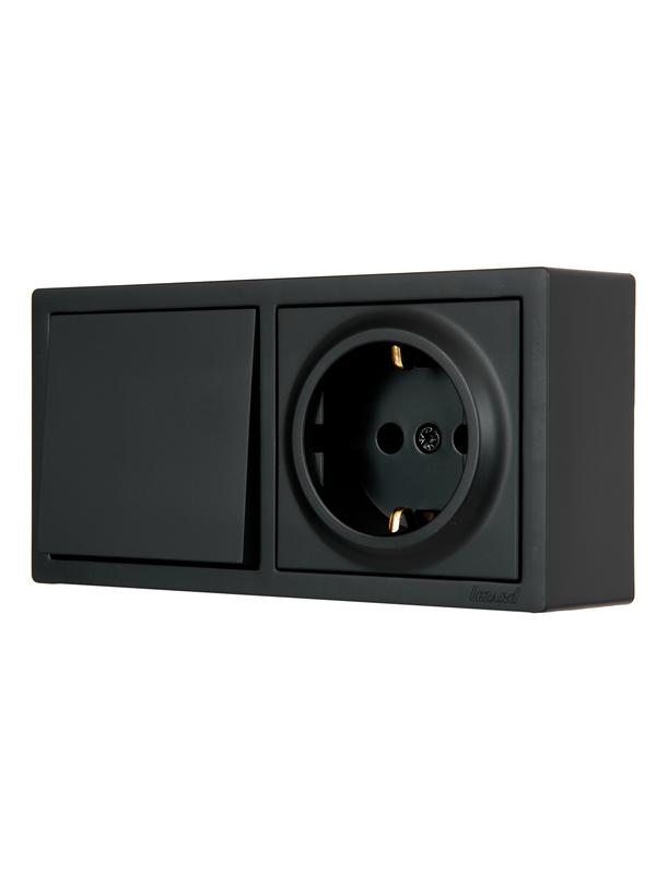 - Блок ОП LETO (1-кл. выключатель + 1-м розетка с заземл.) горизонт. черн. бархат LEZARD 752-4200-170BAP
