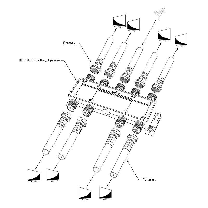 - Делитель ТВх8 под F разъем 5-1000 МГц PROCONNECT 05-6025