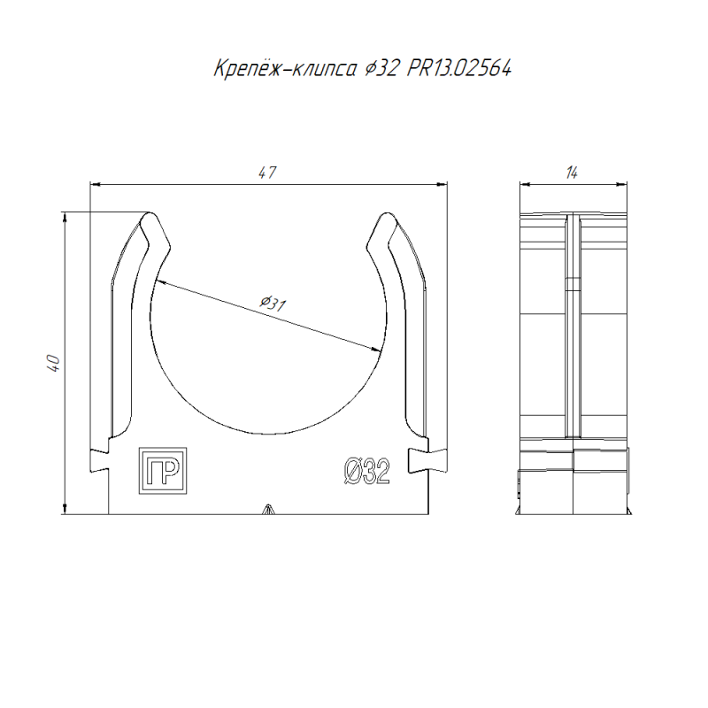 - Держатель для труб (клипса) d32мм для прямого монтажа бел. в п/э (уп.25шт) Промрукав PR13.02564