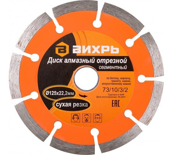 - Диск отрезной алмазный сегментный 125х22.2мм сухая резка Вихрь 73/10/3/2