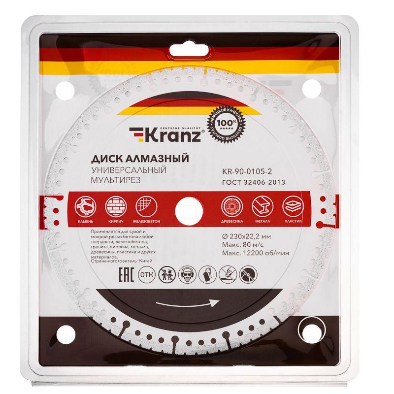 - Диск алмазный универс. профессиональный Мультирез 230х22.2мм вакуумное спекание Kranz KR-90-0105-2