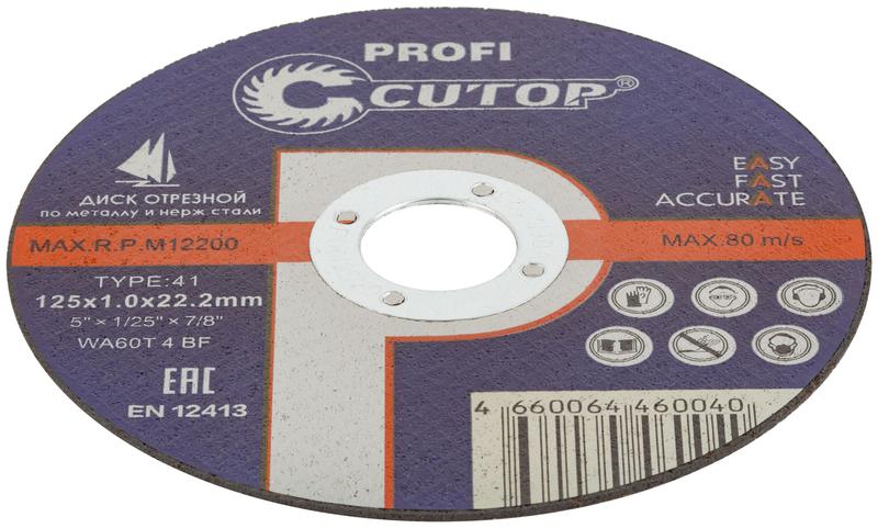 - Диск отрезной по металлу и нерж. стали профессиональный Profi Т41-125х1.0х22.2мм Cutop 39983т