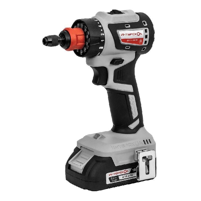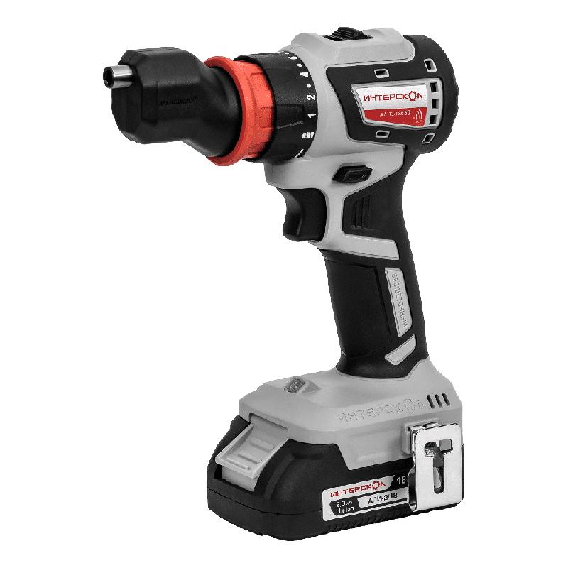 - Дрель-шуруповерт аккумуляторная бесщеточн. ДА-13/18В 50 комби АПИ (Li-ion кейс 2 аккум. 2А.ч 4 насадки) ИНТЕРСКОЛ 776.2.2.79