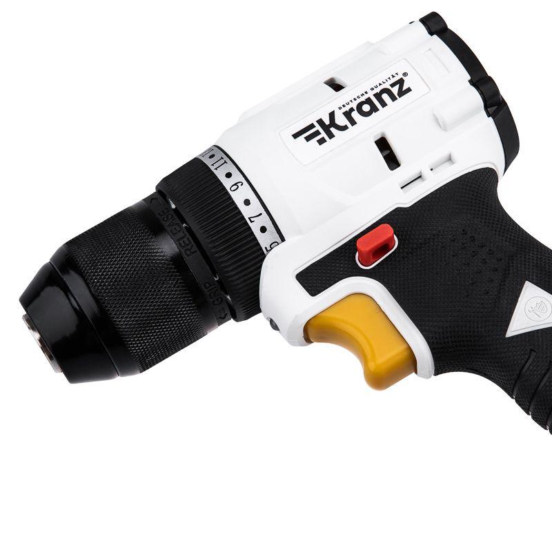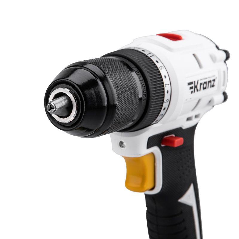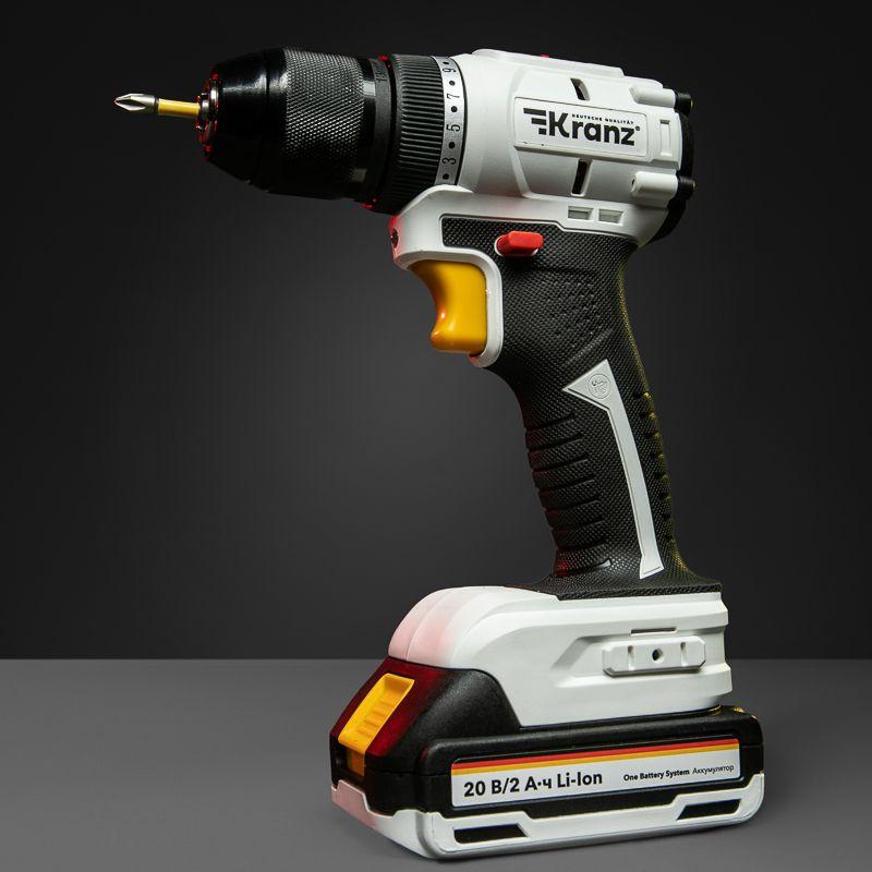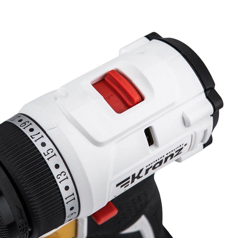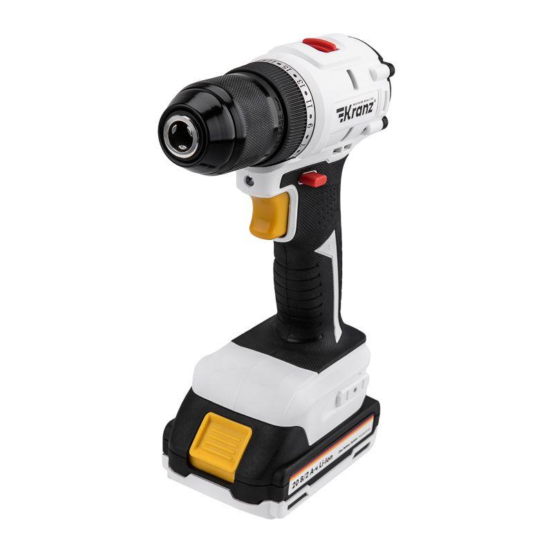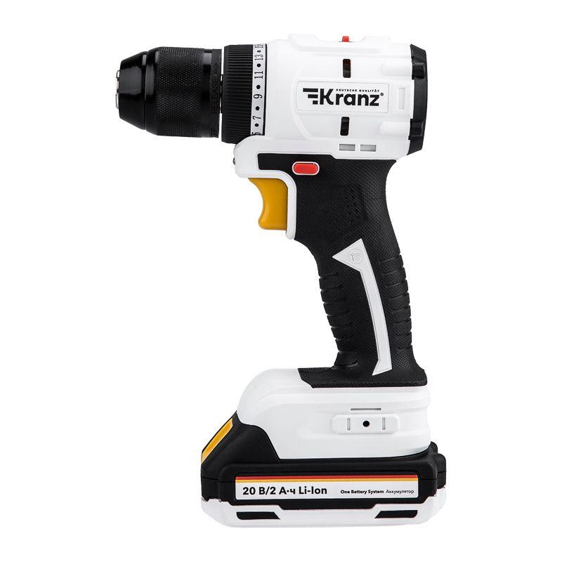 - Дрель-шуруповерт аккумуляторная бесщеточная Li-Ion 20В 55Нм (кейс 2 аккум. 2А.ч) Kranz KR-PT-055