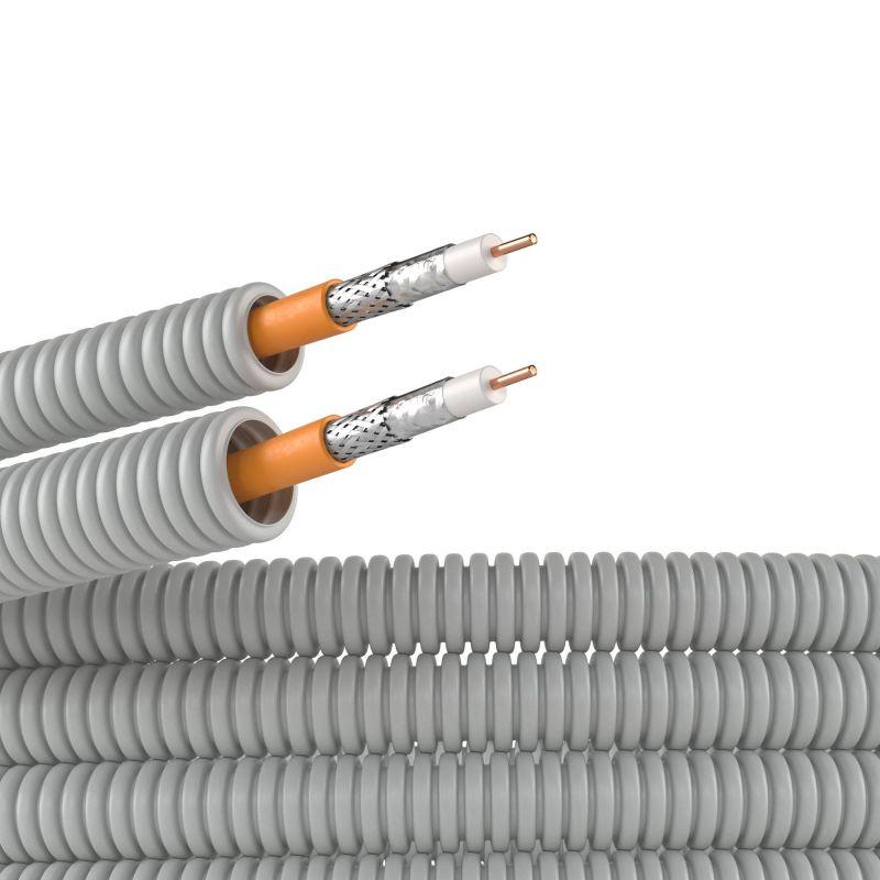 - Электротруба ПВХ гибкая гофрированная d20мм с коаксиальным кабелем SAT нг(А)-HF (уп.50м) сер. DKC 9VE92050