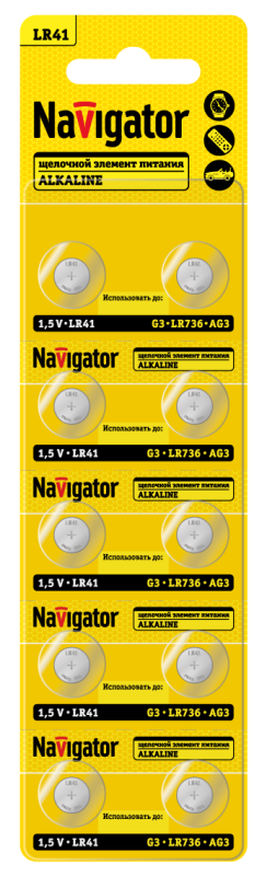 - Элемент питания алкалиновый "таблетка" 95 661 NBT-04 (LR41 AG3 LR736 BP10) (блист.10шт) Navigator 95661
