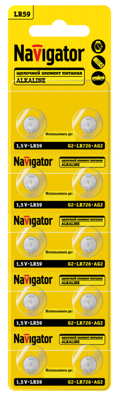 - Элемент питания алкалиновый "таблетка" 95 668 NBT-11 (LR59 AG2 LR726 BP10) (блист.10шт) Navigator 95668