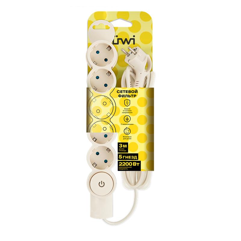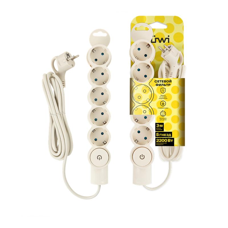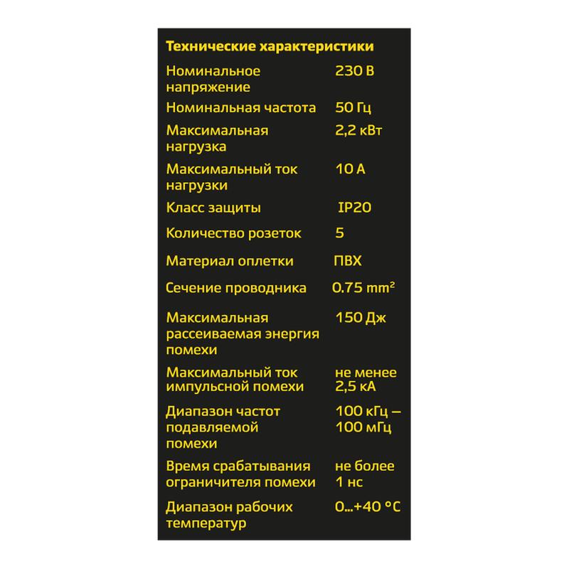 - Фильтр сетевой 5х3м с/з с выкл 2кВт 10А/2 сл. кость Duwi 32572 7