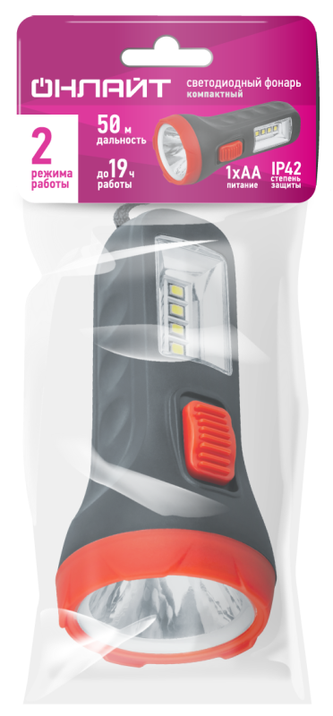 - Фонарь светодиодный ручной 90 854 OPT-CP04-1AA полипроп. 1LEDх0.5Вт 4LEDх1Вт 2реж 20лм ОНЛАЙТ 90854