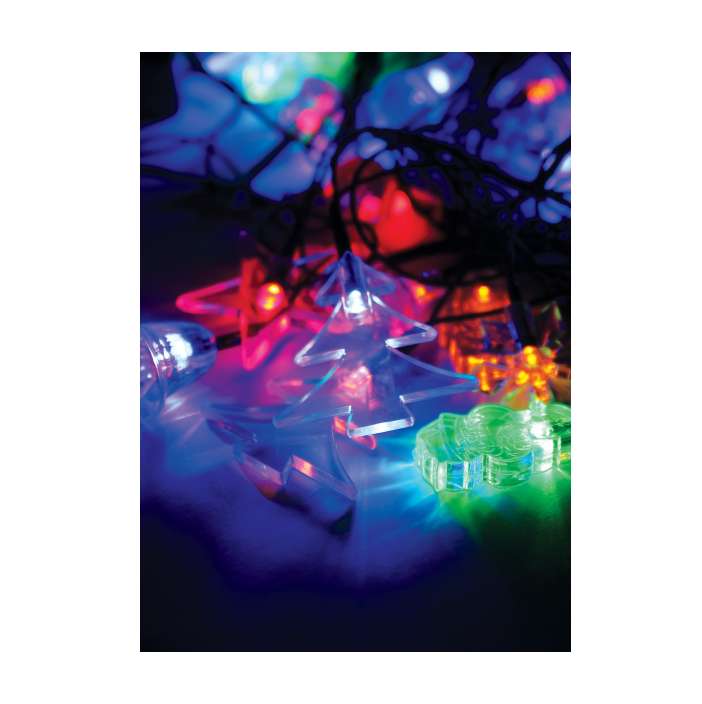 - Гирлянда декоративная "Новогодняя" (прозр. насадки-колокольчики сосульки звездочки снежинки елочки кристаллы снеговики Дед Морозы) 4.4м 30LED IP20 мультиколор Космос KOC_GIR30LEDMIX1_RGB