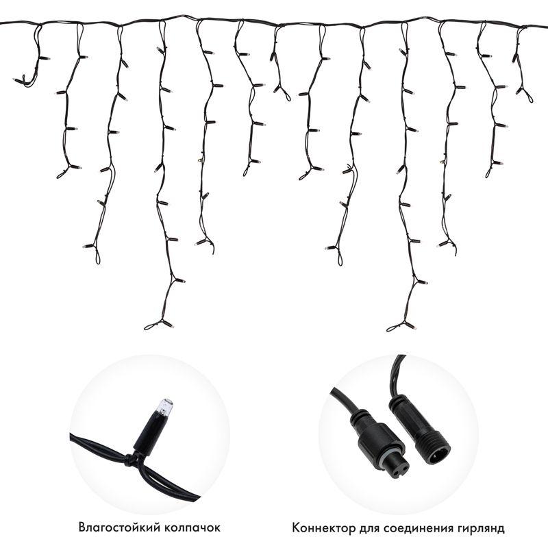 - Гирлянда светодиодная "Айсикл" (бахрома) 5.6х0.9м 240LED син. 16Вт 230В IP67 провод каучук черн. Neon-Night 255-243