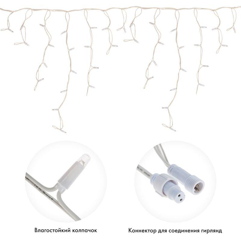 - Гирлянда светодиодная "Айсикл" (бахрома) 5х0.7м 152LED тепл. бел. 12Вт IP67 эффект мерцания провод бел. каучук (нужен шнур питания 315-001) Neon-Night 255-386