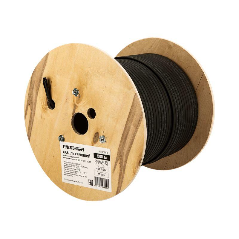- Кабель греющий саморег. для труб водостоков крыш 30КНС-2ЛП-65/85 UV неэкранированный 30Вт/м 200м PROCONNECT 51-0254-4