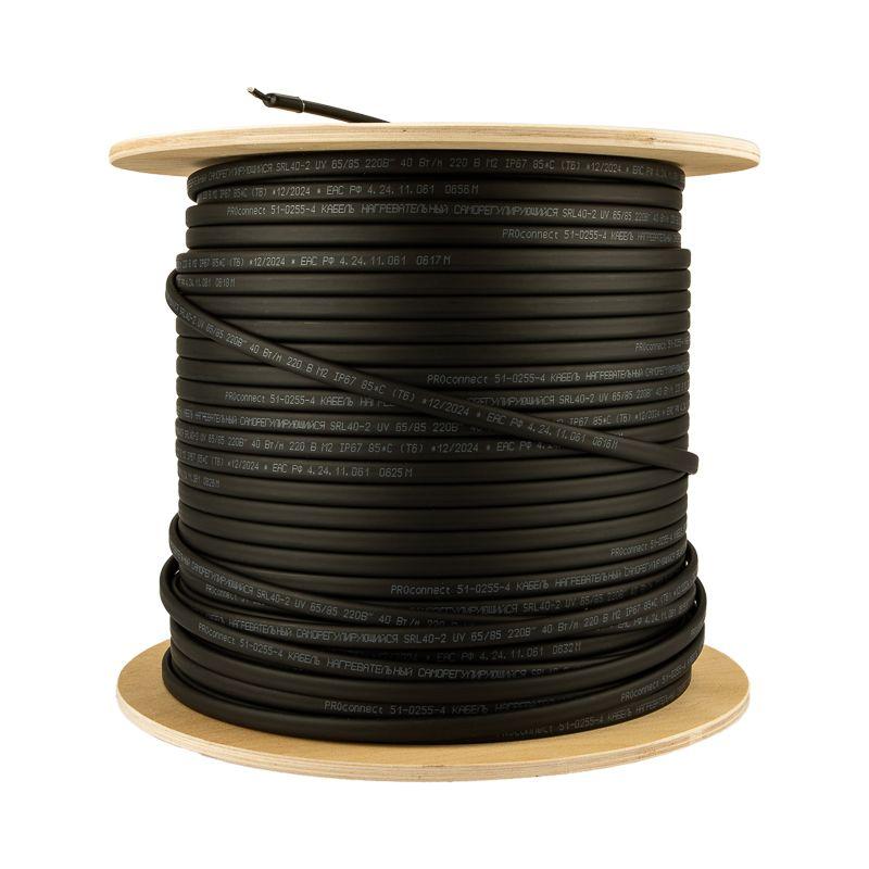 - Кабель греющий саморег. для труб водостоков крыш 40КНС-2ЛП-65/85 UV неэкранированный 40Вт/м 200м PROCONNECT 51-0255-4