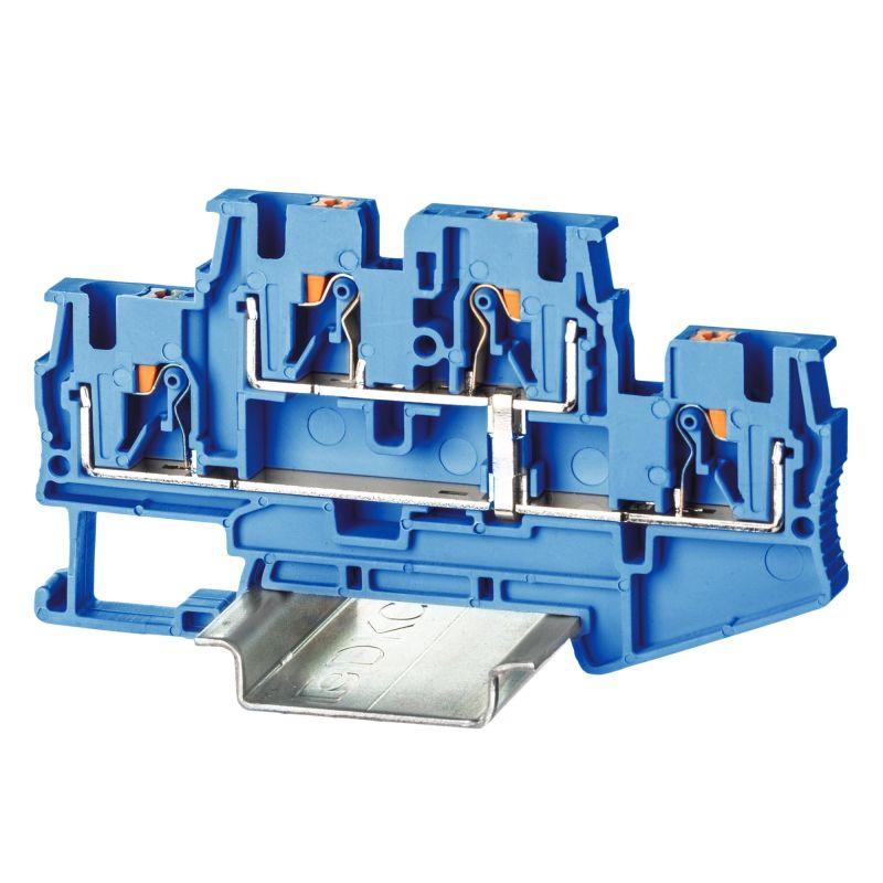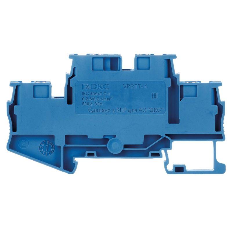 - Клемма двухуровневая зажим push-in 4 точки подключения с перемычкой между уровнями 4кв.мм син. DKC VPRTT-4-PV-BU