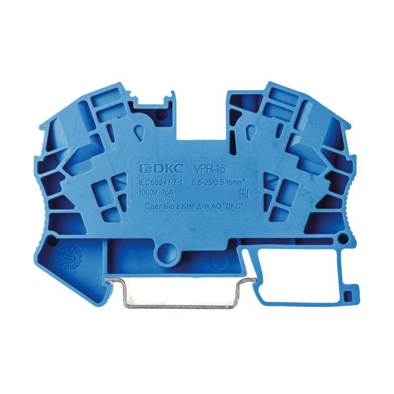 - Клемма проходная зажим push-in 2 точки подключения 16кв.мм син. DKC VPR-16-BU