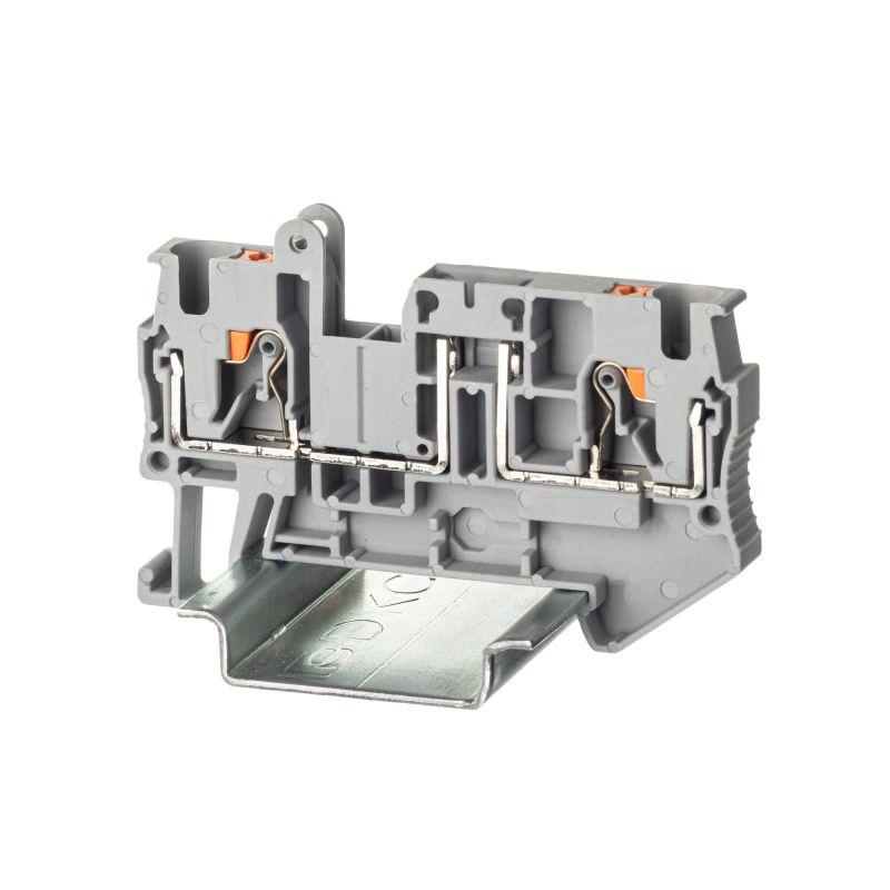 - Клемма с размыкателем зажим push-in 2 точки подключения 4кв.мм сер. DKC VPR-4-TG