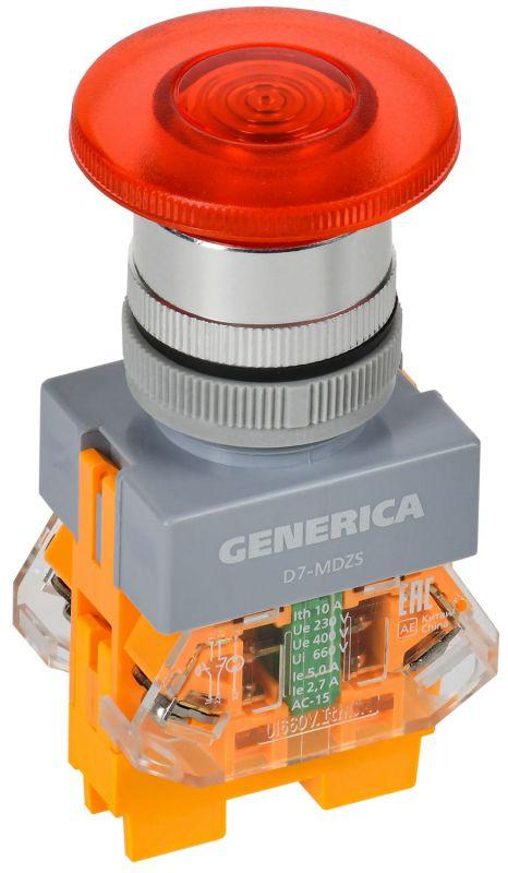 - Кнопка D7-MDZS "Грибок" d22мм 1НО+1НЗ с подсветкой и фиксацией красн. GENERICA BBG50-11MDZS-3-11-K04-G