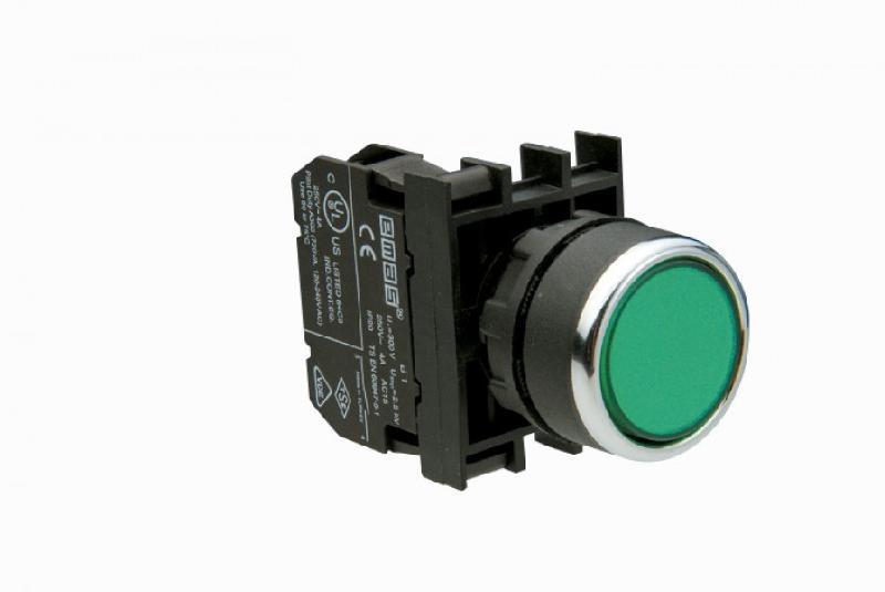 - Кнопка нажимная круглая зел. (2НО) EMAS B101DY