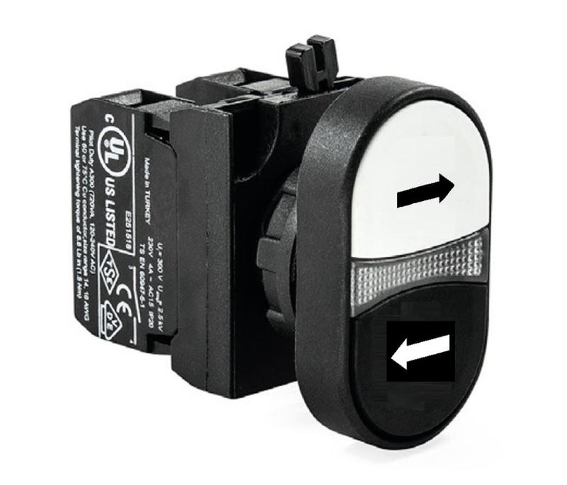 - Кнопка сдвоенная (1НО+1НО) со стрелками "Влево-Вправо:(CP) черн./черн. EMAS CP101K20HHOK