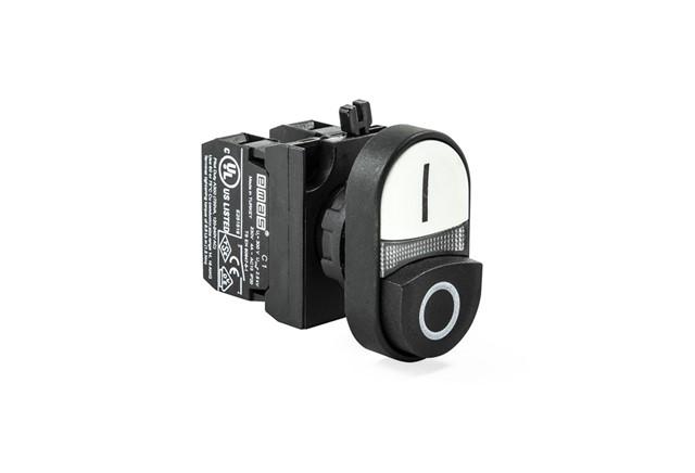 - Кнопка сдвоенная выступающая (1НО+1НЗ) (CP) черн./бел. EMAS CP102K21HB