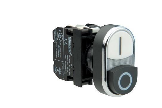 - Кнопка сдвоенная выступающая с подсветкой неон (1НО+1НЗ) черн./бел. EMAS B132K21HB