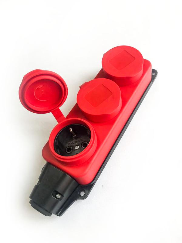 - Колодка удлинителя 3-м 16А IP44 с заземл. каучук красн. КОСМОС KKsm-3g-Z-IP(R)16A
