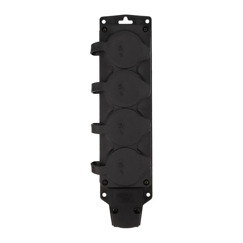 - Колодка удлинителя 4-м с заземл. 16А IP54 влагозащ. с защ. крышкой COMPACT каучук черн. Rexant 111-224