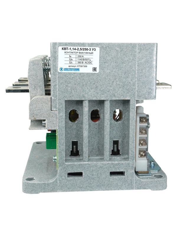 - Контактор вакуумный КВТ-1.14-2.5/250-3 У3 3п 250А кат. 380В 4НО+3НЗ IP00 без реле Электротехник ET557369