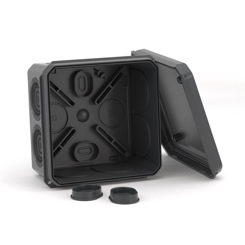 - Коробка ответвительная с 8+2 кабельными вводами d20/20мм IP55 70х70х40мм черн. DKC 53770B
