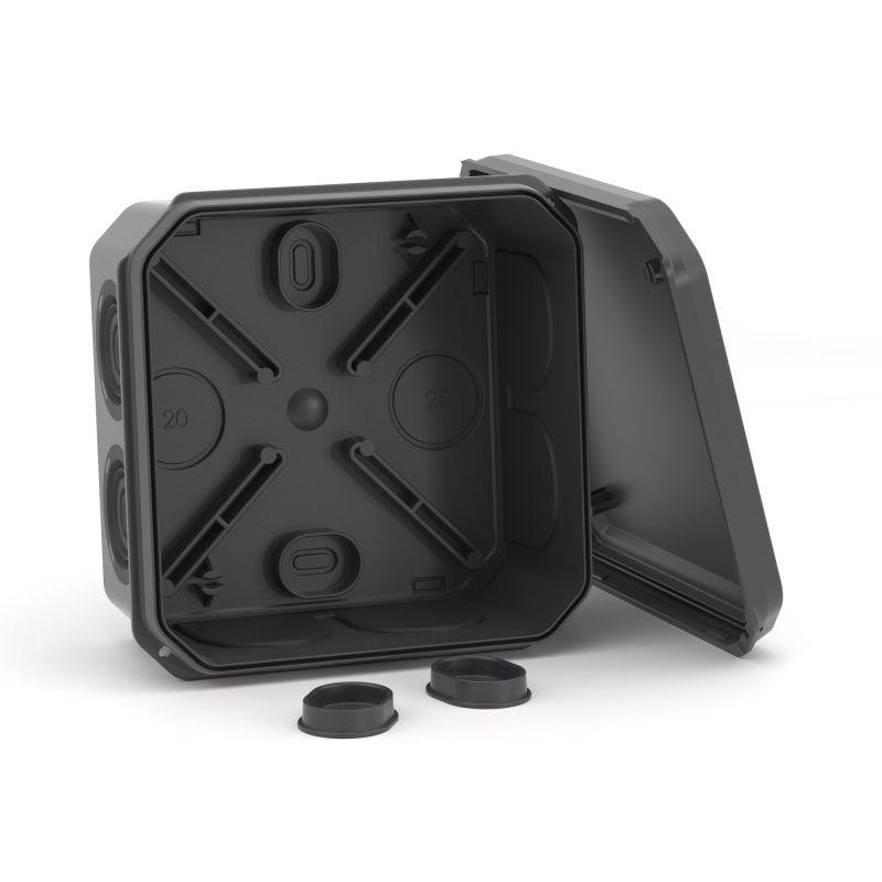 - Коробка ответвительная с 8+2 кабельными вводами d20/20мм IP55 85х85х40мм черн. DKC 53785B