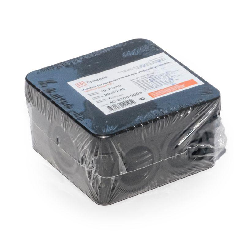 - Коробка распределительная ОП 70х70х40мм безгалоген. (HF) черн. Промрукав 40-0200-9005