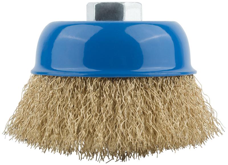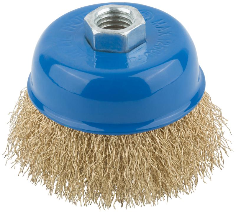 - Корщетка тип "чашка" гайка М14 стальная латунированная волнистая проволока 75мм MOS 38942М