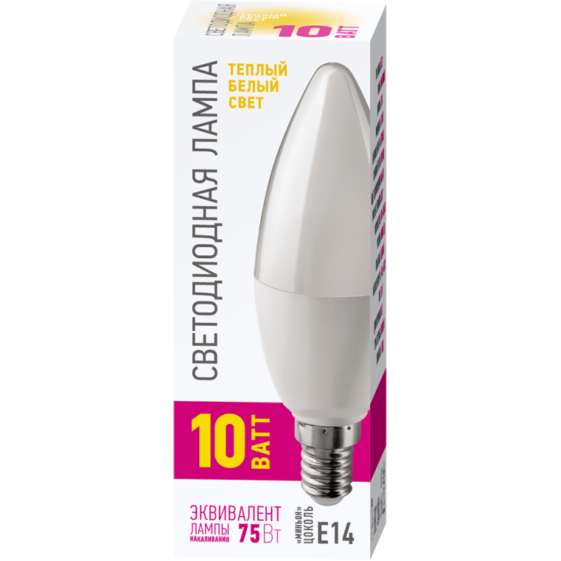 - Лампа светодиодная 82 914 OLL-C37-10-230-2.7K-E14-PROMO 10Вт свеча 2700К E14 220-240В ОНЛАЙТ 82914