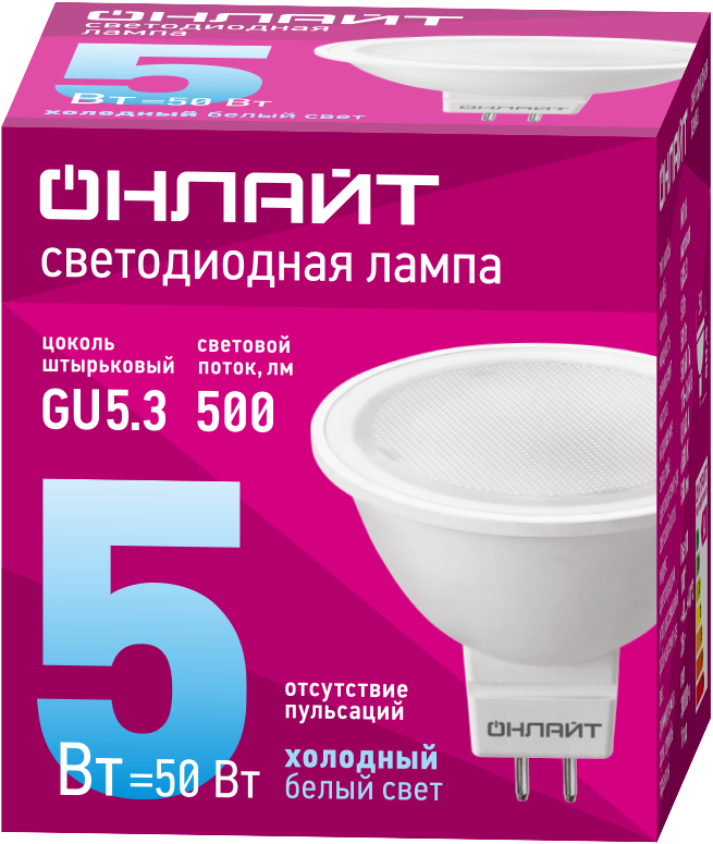 - Лампа светодиодная 61 133 OLL-MR16-5-230-6.5K-GU5.3 5Вт 6500К холод. бел. GU5.3 500лм 176-264В ОНЛАЙТ 61133