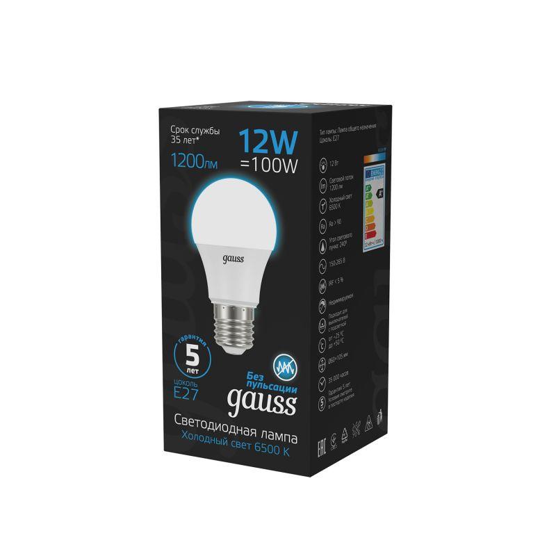 - Лампа светодиодная Black 12Вт A60 грушевидная 6500К холод. бел. E27 1200лм GAUSS 102502312
