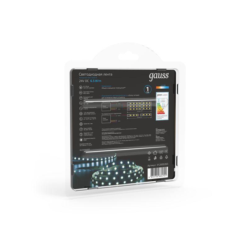 - Лента светодиодная Black 2835/120-SMD 6.5Вт/м 5000К холод. бел. IP20 600лм/м 24В (блист.5м) GAUSS 312000265