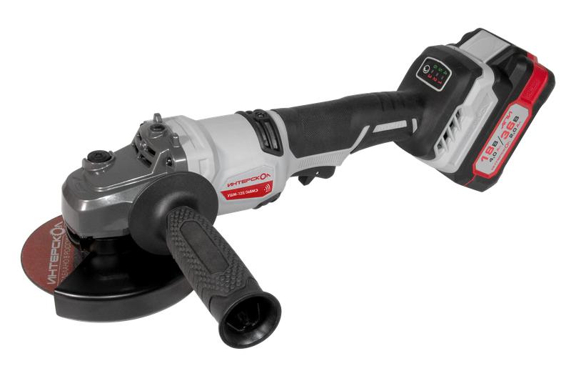 - Машина шлифовальная угловая аккумуляторная бесщеточная УШМ-125/36ВМЭ 125мм АПИ 36В 2 АКБ 2.0А.ч ЗУ ИНТЕРСКОЛ 956.2.2.70