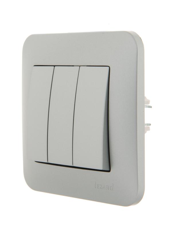 - Выключатель 3-кл. 1п СП Karina 10А IP20 механизм матов. серебр. LEZARD 707-4388-109