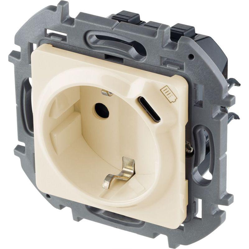 - Розетка 1-м СП Inspiria 16А IP20 250В 2P+E немецк. стандарт с заряд. устройством USB тип C 1.5А 5В механизм сл. кость IEK 673771