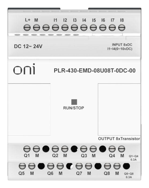 - Модуль расширения входов выходов ПЛК 430 4 DI 4 UI (0-10В/DI) 8 TO 24В DC ONI PLR-430-EMD-08U08T-0DC-00