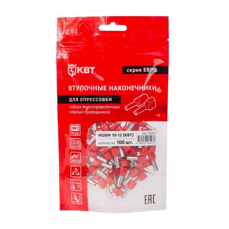 - Наконечник штыревой втулочный изолированный НШВИ 10-12 ЕВРО красн. КВТ 103207