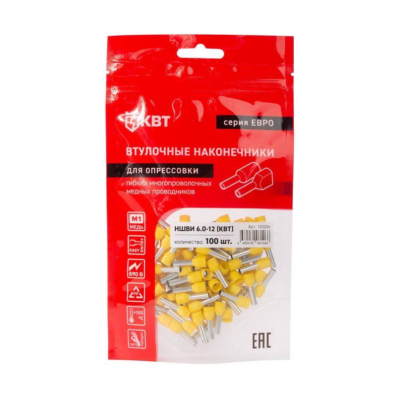 - Наконечник штыревой втулочный изолированный НШВИ 6.0-12 ЕВРО желт. КВТ 103206