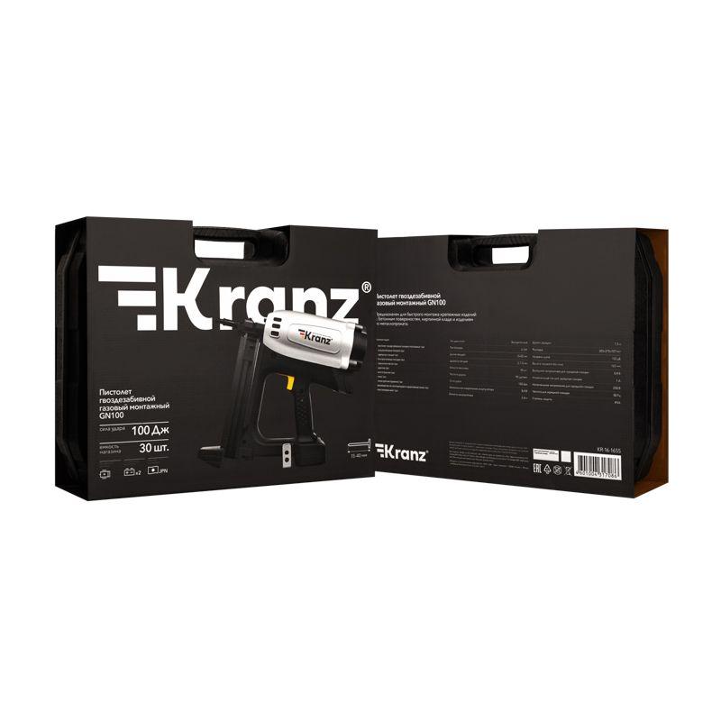 - Пистолет монтажный газовый гвоздезабивной GN100 100Дж длина гвоздей 15-40мм d2.7-3мм KRANZ KR-16-1655