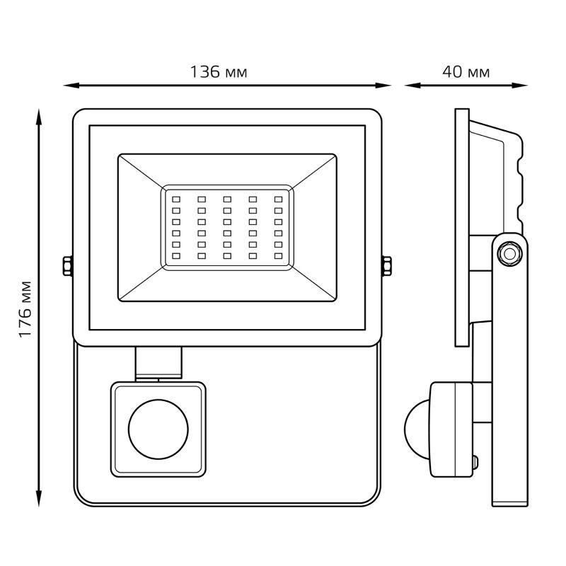 - Прожектор светодиодный Elementary 30Вт 6500К IP65 2850лм 175-265В ДО с датчиком движения черн. GAUSS 628511330