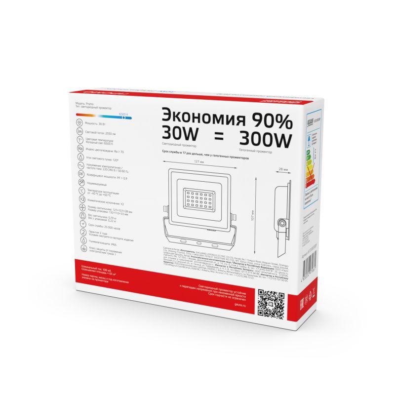 - Прожектор светодиодный Elementary 30Вт IP65 6500К 2550лм PROMO G3 черн. GAUSS 613100330P