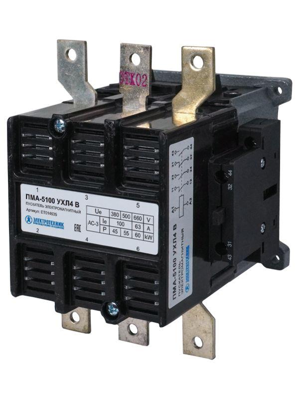- Пускатель электромагнитный ПМА-5100 УХЛ4 В 100А 110В 2НО+2НЗ IP00 нереверсивный без реле Электротехник ET014635
