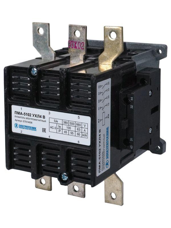 - Пускатель электромагнитный ПМА-5102 УХЛ4 В 100А 110В 2НО+2НЗ IP00 нереверсивный без реле Электротехник ET014636