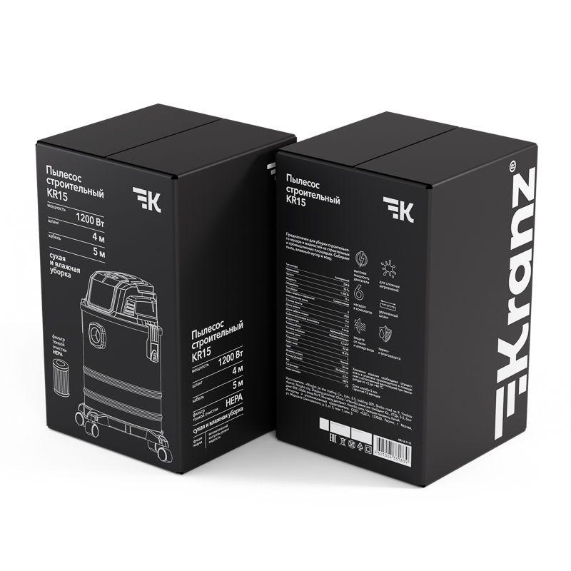 - Пылесос строительный KR15 1200Вт 15л 4м Kranz KR-16-1115